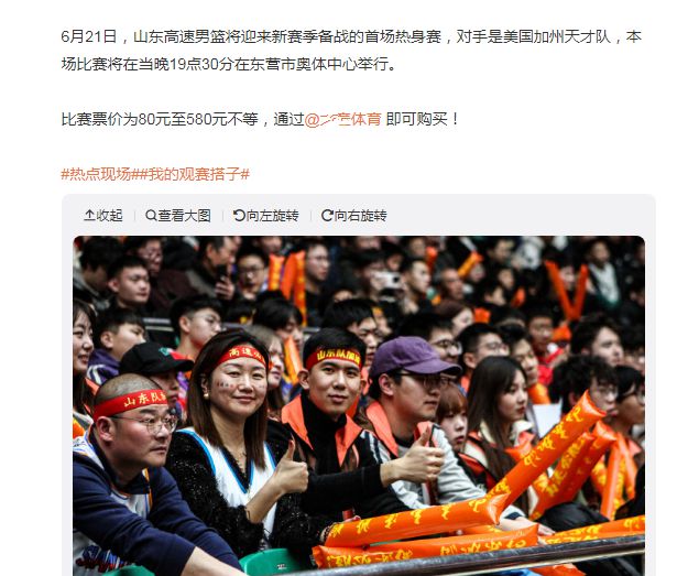 此次热身赛比赛具体时间以及票价也确定,据了解此次比赛地点是东营奥体中心,时间是21日晚上19点30分,对手是美国加州天才队。票价也出炉80元至580元不等,可通过相关渠道购买。